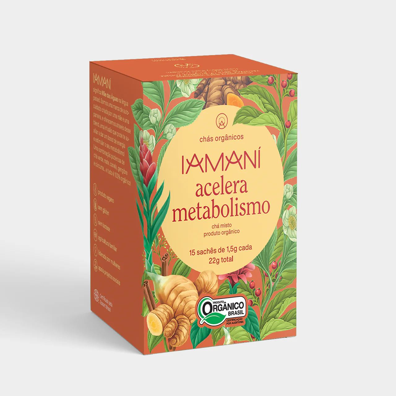 CHA IAMANI ACELERA METABOLISMO 15 SACHES Início Saúde e Bem-estar Linha Chá Iamani 31.05 R$ 31,05 ** Valor aplicado somente para compras on-line através do site. - 1 + Acelera metabolismo foi formulado para ajudar a impulsionar sua energia e estimular o metabolismo! esta poderosa combinação de chá verde, mate tostado, canela, gengibre e cúrcuma é exclusiva da Iamaní no Brasil! ingredientes: chá verde: conhecido por sua capacidade de estimular o metabolismo. mate: popular no Brasil, estudos mostram que pode reduzir o apetite e aumentar a queima de gordura. canela: possui propriedades anti-inflamatórias e estimula a produção de serotonina, beneficiando o humor. gengibre: com efeitos termogênicos, ativa o metabolismo. cúrcuma: raiz antioxidante que reduz a inflamação e combate os radicais livres. descrição técnica: 15 sachês de 1,5g cada. peso total: 22,5g Consulte o frete e o prazo de entrega Carregando... Frete Grátis a partir de R$ 400,00*somente compras no site Parcelamento até 5x sem juros no cartão de crédito Manipulados com qualidade e melhor preço. Segurança Site 100% seguro Ingredientes • Chá verde• Mate• Canela• Gengibre• Cúrcuma Benefícios • Contribui para aumentar e equilibrar a energia, promovendo uma melhora na disposição e bem-estar. Modo de preparo • Coloque 1 sachê de chá em uma xícara de 200ml.• Despeje água fervente e deixe em infusão por 5 min.• Aproveite• Se preferir leve a bebida pronta à geladeira por algumas horas Ficha técnica • Medida da caixa - largura 8cm / altura 10,5 / profundidade 6,5cm• Cada caixinha contém 15 sachês de 1,5g cada.• Peso total 22,5g