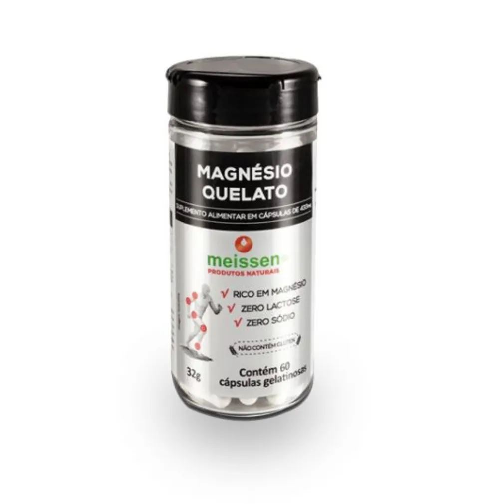O Magnésio Quelato 433mg 60 Cápsulas Meissen é um mineral que, ligado a um aminoácido, fornece a cada 2 cápsulas, 260mg de magnésio, o que corresponde a 100% da ingestão diária recomendada. Sua fórmula garante uma melhor absorção, trazendo saúde e equilíbrio ao organismo e auxiliando na absorção de outros minerais igualmente importantes, como cálcio, potássio e ferro.